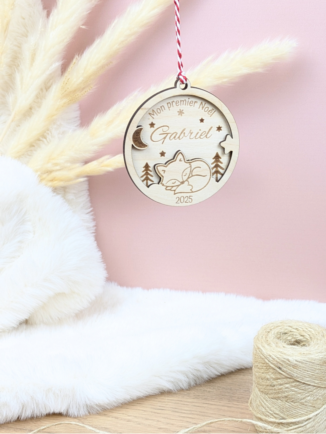 Idéale comme cadeau de naissance ou pour célébrer un Premier Noël, cette boule est gravée avec soin dans notre atelier artisanal.