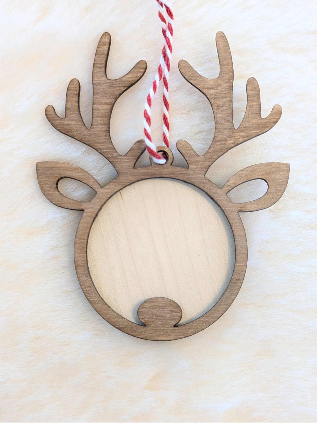 Apportez une touche d'originalité à votre sapin avec cette boule en bois en forme de tête de renne .